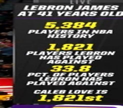 詹姆斯生涯至今迎战过1821位对手凯莱布乐福是最新一人