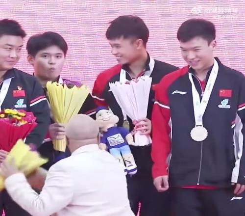 干净又卫生林诗栋颁奖仪式上闻花差点吐了,向队友吐槽:好臭