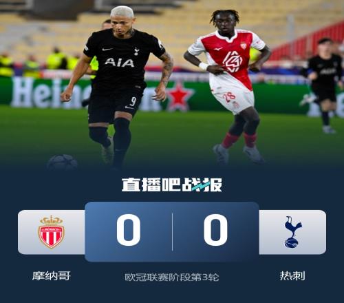 摩纳哥本轮0-0战平热刺,两队都未能取得进球,比赛以闷平告终!